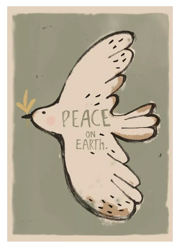 Porteuse d’un joli message « Peace on Earth », la colombe symbole de paix embellira votre salon, une chambre.