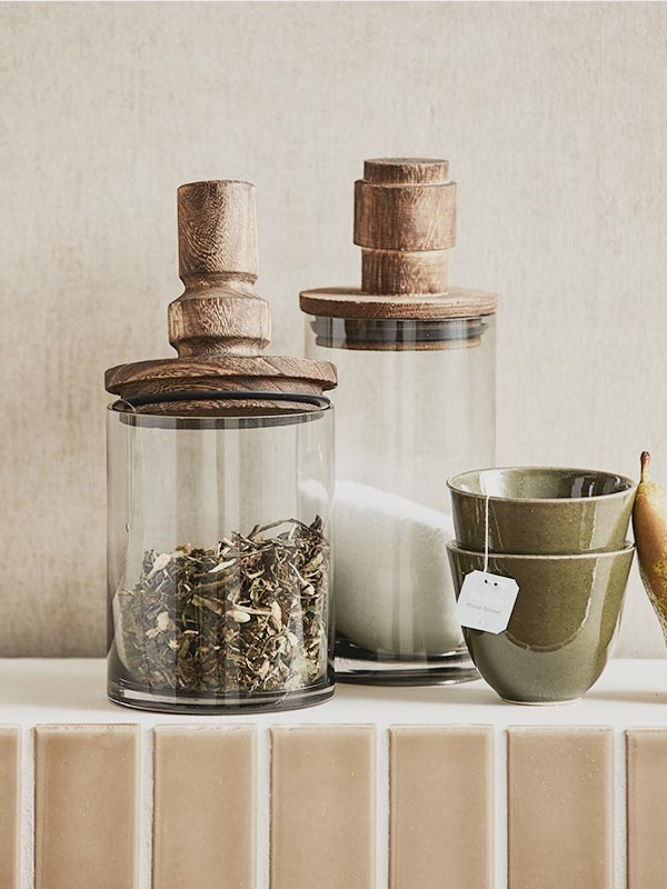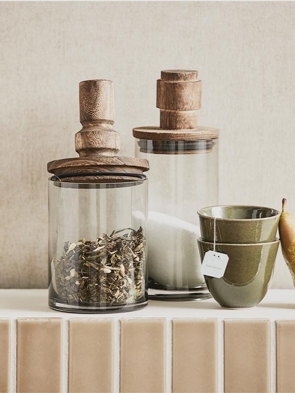Simple Crush a déniché pour vous ces magnifiques pots en verre légèrement fumés avec couvercle en bois, allier beauté et praticité !