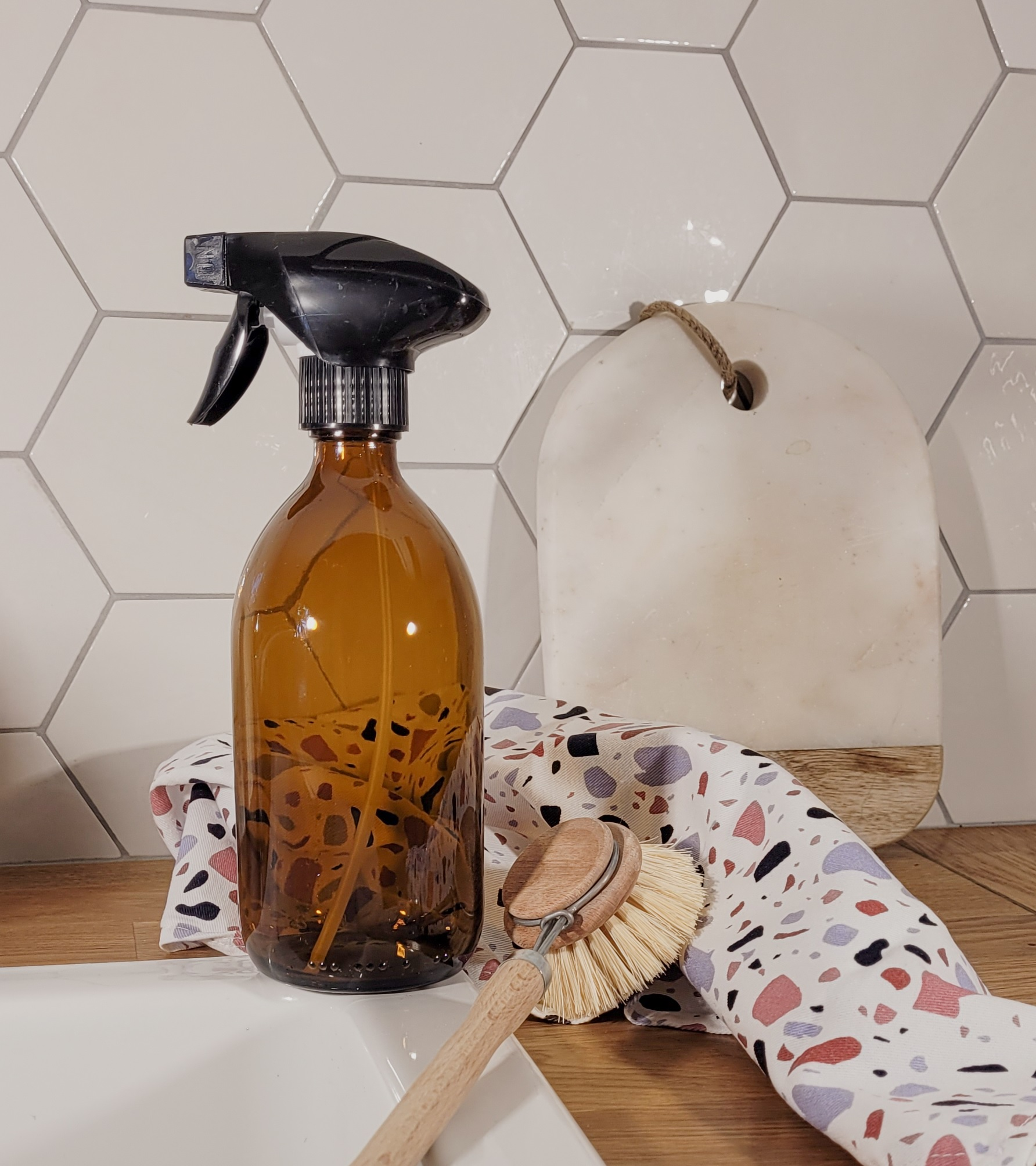🌿 Vous pouvez remplir la burette en verre avec vos produits ménager fait maison, un mélange vinaigre blanc / eau afin de l'avoir toujours sous la main pour nettoyer.