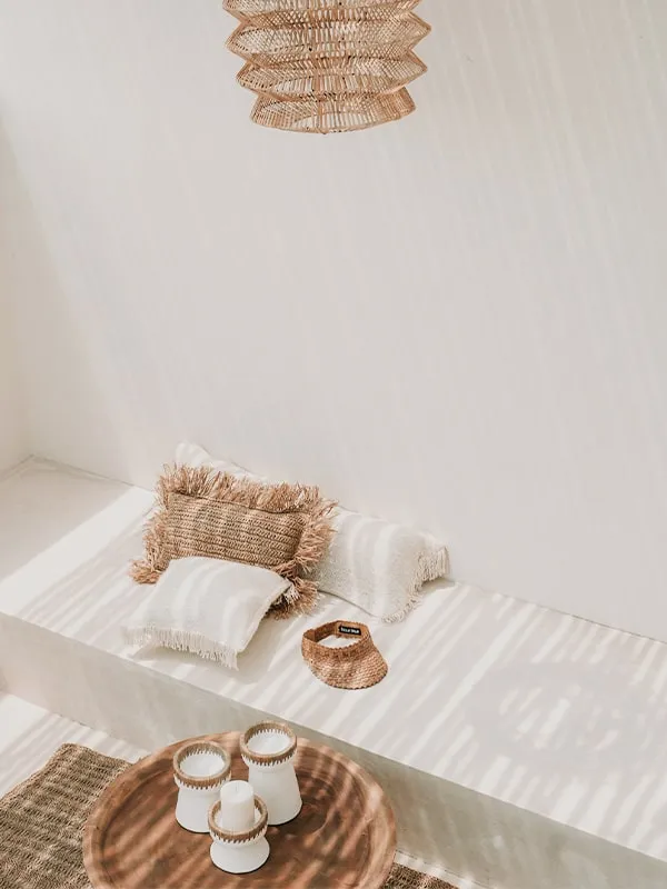 Casquette visière balinaise tissée à écailles en bambou naturel. Taille unique.