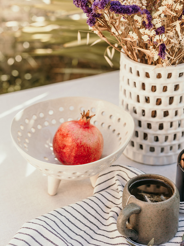 Corbeille à fruit céramique – Coupe en céramique ajourée blanc crème