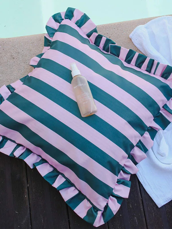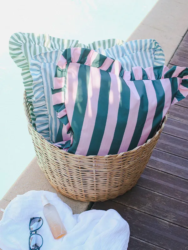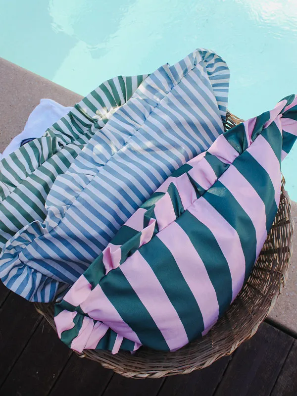 Coussin d’extérieur imperméable et déperlant rayé à volants☀️