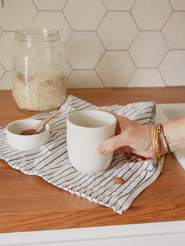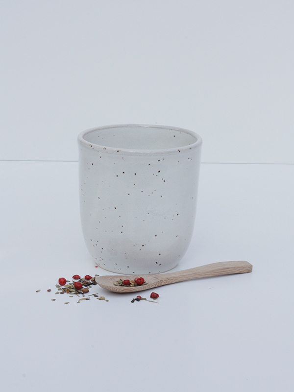 Mug en grès artisanal blanc et points bruns – CALMA – Eulenschnitt