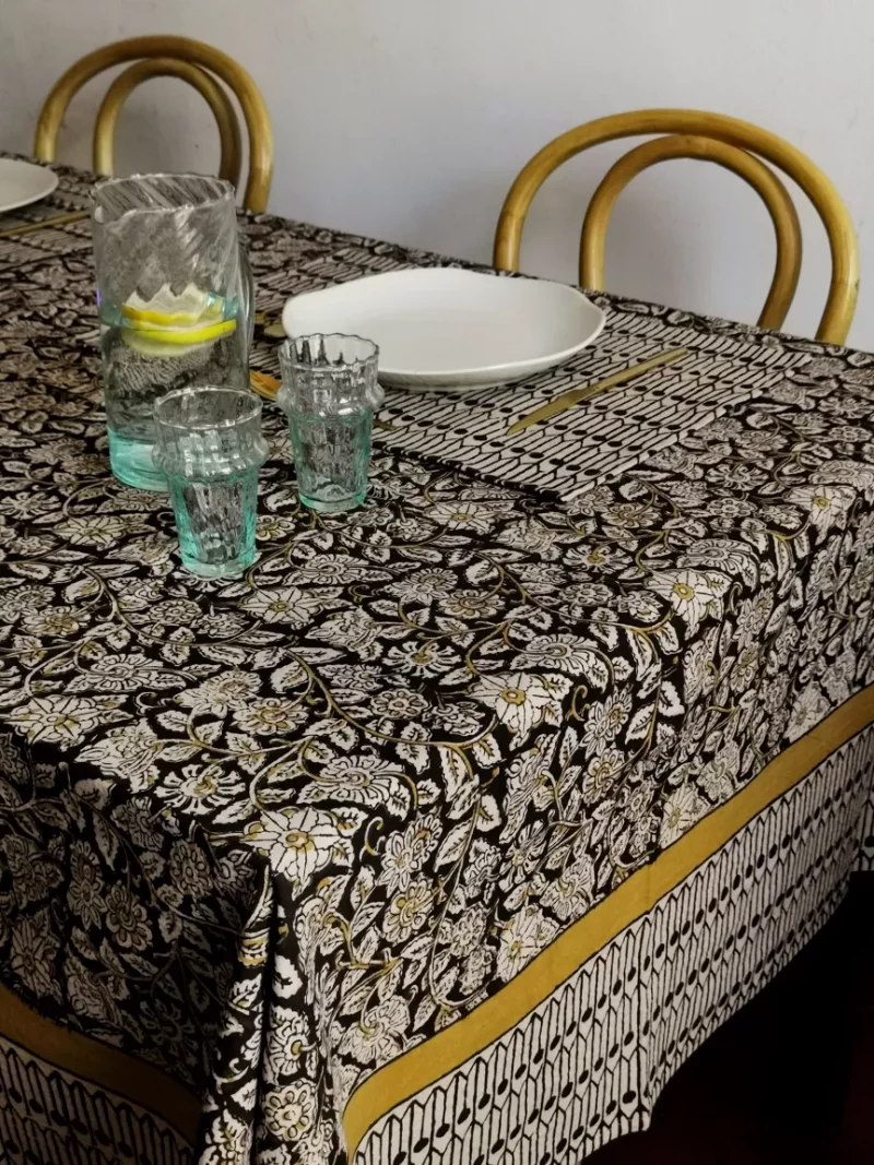 Les nappes indiennes étant fabriquées à la main, de petites différences peuvent survenir entre chaque modèle. C'est la signature de l'authenticité ! 💛