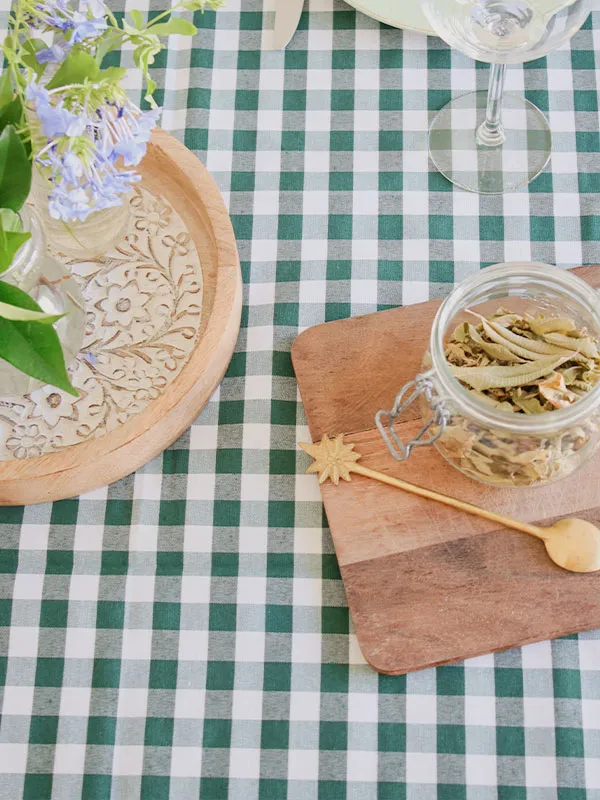 La nappe carreaux : un motif intemporel qui revient en force sur nos tables réactualisé dans de une jolie couleur vert kaki 💚