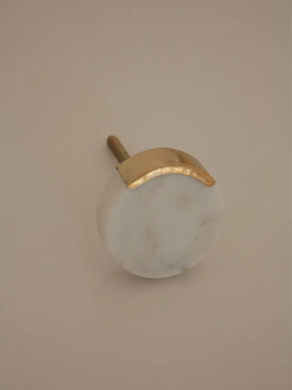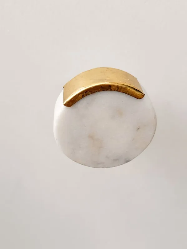 Patère ronde en marbre blanc soulignée par un support en laiton.