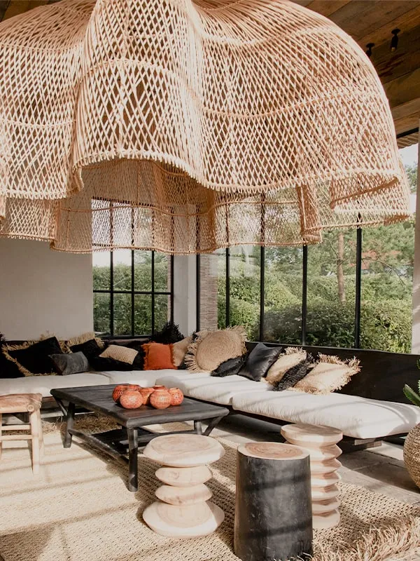 Suspension Whipped XXL en rotin naturel – 150x150x100cm.