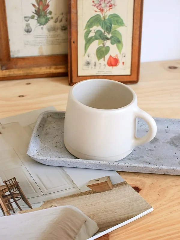 Tasse céramique artisanale avec anse, beige.