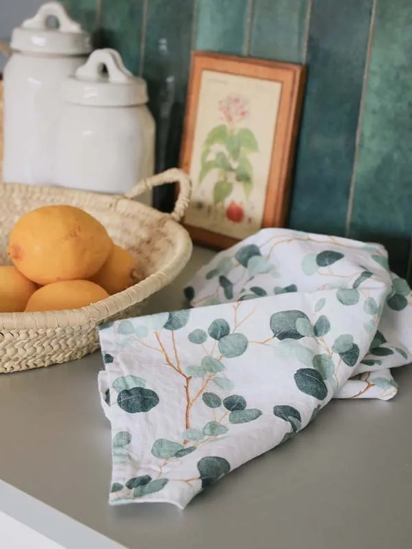 L'eucalyptus que l'on adore pour décorer nos intérieurs et qui diffuse son parfum caractéristique se retrouve à présent sur nos torchons !